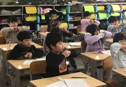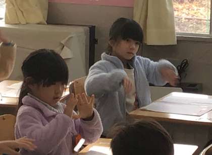 1年生 書写体操中 公開日 2025/12/11 更新日 2025/12/11 校長室から 1年2組さん、書写の授業です。 書写の授業では「書写体操」をずっとやっています。 もう慣れたもので、みんな何も言わなくても進めることができます。 今日の授業では「書写体操したら、字が上手になるかな?!」と質問する男の子がいました。 先生が「手が温かくなるとスムーズに動くから上手に書けるよ」と答えました。 「よ〜し」とますます張り切って体操をしていました。