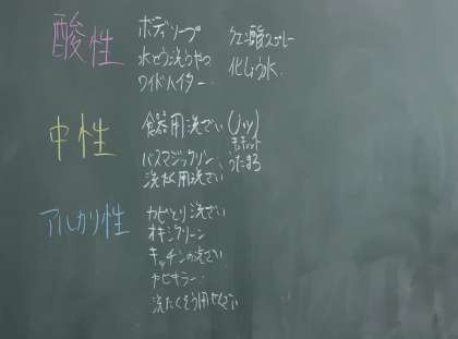 先生が普段使っている酸性、中性、アルカリ性を紹介してくれました。