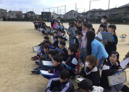 最後に運動場に放水をしてもらいました.