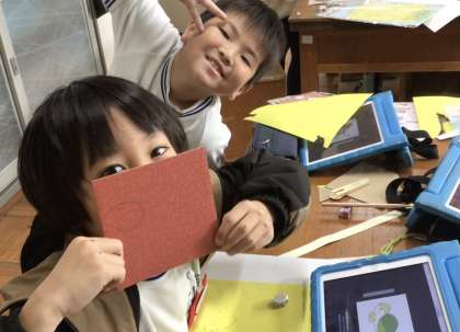 ネコ、かめ、UFO、クリスマスツリー、思い思いの作品を作っていました.