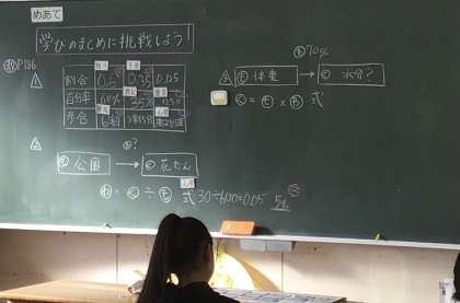 5年1組さん、算数の授業で今までの学習のまとめをしていました.