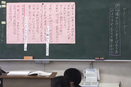 じいさまと、ばあさまの気持ちを文間から読み取る2年1組のみんなでした.