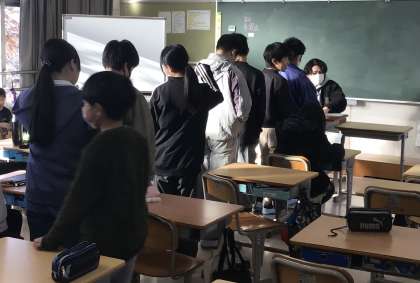 6年2組さんの教室へ行くと、先生の前に行列ができていました.
