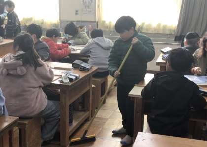 早く終わった子は削りかすがたくさん出るので、ほうきで掃除をしてくれていました.