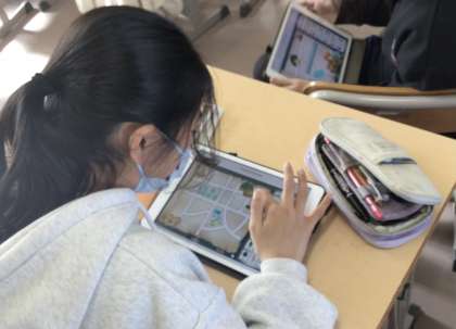 5年1組さん、英語の授業で「道案内」の勉強をしていました.