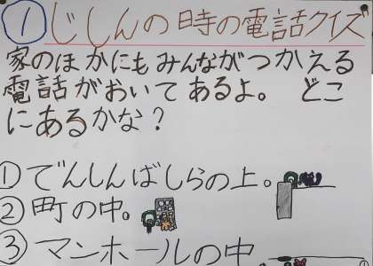5年生で防災の勉強をしているので、それに関連した問題が2問あります。