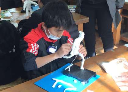 「未来の自分」と題して、作品作りをする6年1組さんです。 何をあらわしているか、わかりますか?