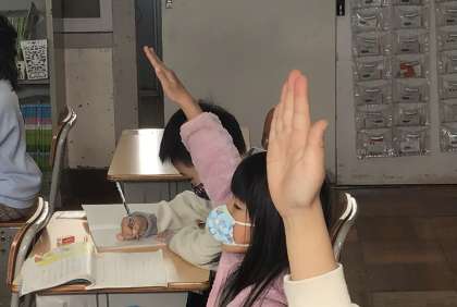ピンピンに手の上がる2組のみんなです。