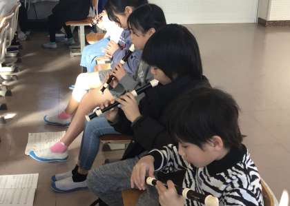 3年2組さん、音楽の授業でリコーダーの練習をしていました。