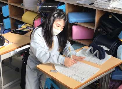 「校長先生、綺麗な字じゃないですか?」と教科書のような美しい字を見せてくれました。