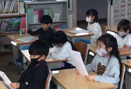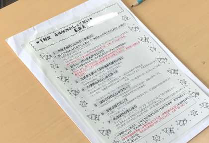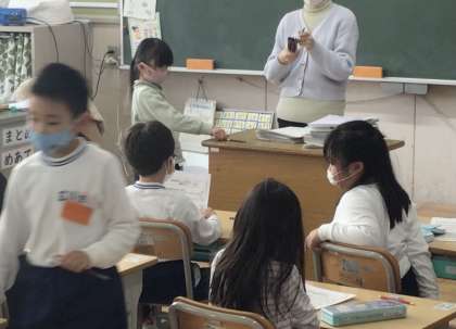 1年2組さん、5時間目に先生から冬休みの宿題の話を聞いていました。
