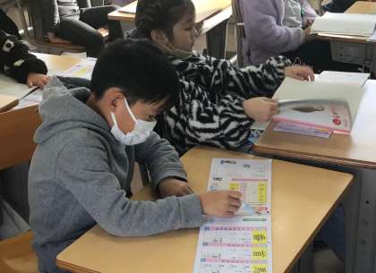 2年2組さん、漢字の勉強で「馬」「首」などを勉強中でした。