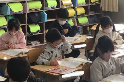 1年1組さん、道徳の授業で「おふろそうじ」というお話を先生が読んでくれました。