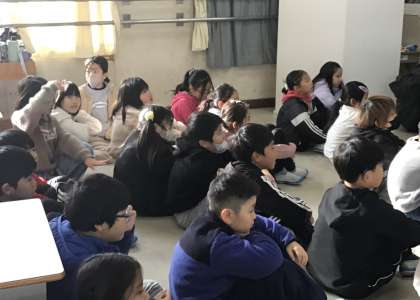 3年生のみんなが1組に入って、冬休みの生活について、先生のお話を聴いていました。