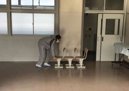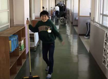 音楽室、渡り廊下、5年2組前の廊下掃除です。