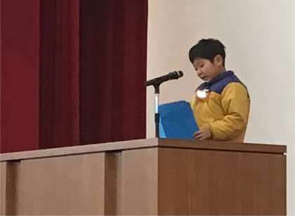 児童代表で1年生、4年生の子が話をしました。