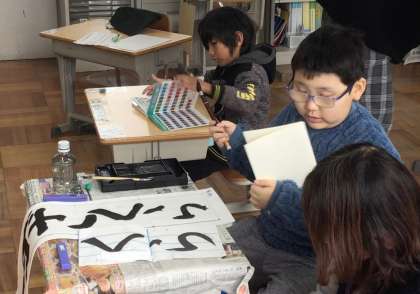 書き初めの様子です