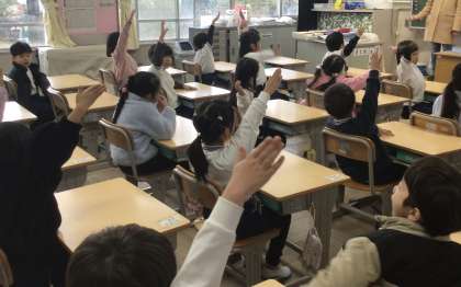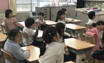 1年2組さん、お正月のあそび、どんなもにがあるか、みんなで発表していました。