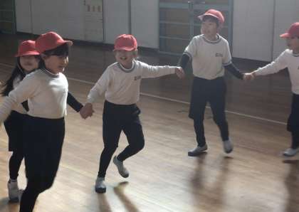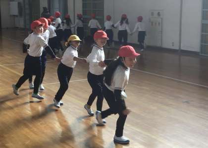 繋いだ手を揺すりながら、龍が飛んでいるように進みます。