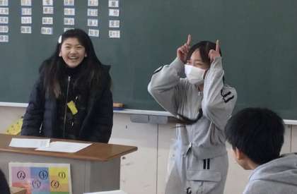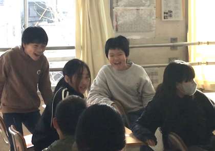 先生から「最近、盛り上がるものは何があるの?」と質問があり、「◯◯だ!」ということで、どんなものかを2人の女の子が見せてくれて、周りの子たちがリズムをとってくれていました。