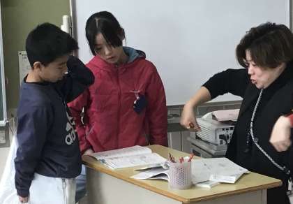 時速、距離、時間の関係を考えながら、難問に挑戦し、解けたと思ったら先生チェックを受けます。