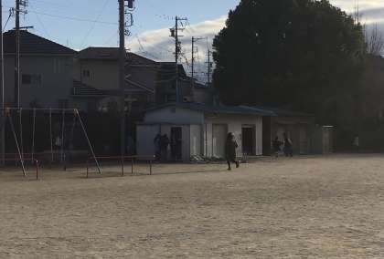 運動場でかくれんぼです。