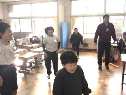 5組のみんなは、映像を楽しく見ながら身体も動かしていました。