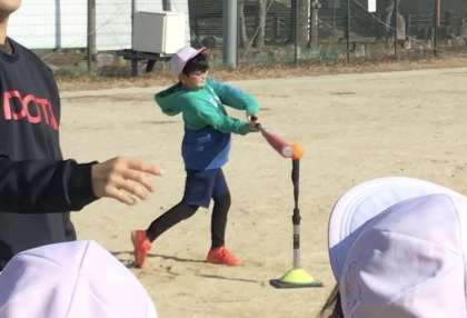 なかなか長打が出なかった中、いい当たりを男の子が打ちました。