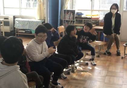 司会の子が前に出て、今日の給食のことなどを話していました。