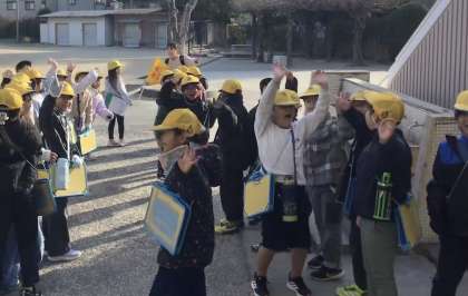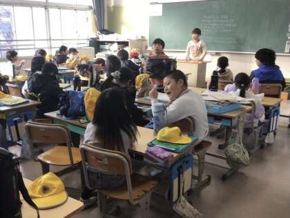 今日は2年2組さんが「まち探検」へ出発です。