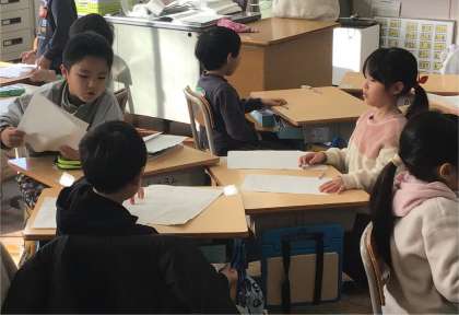 しかし、残念ながら教室にたどりついた時には今日の活動を終えていて、プリントを班ごとに集める所でした。
