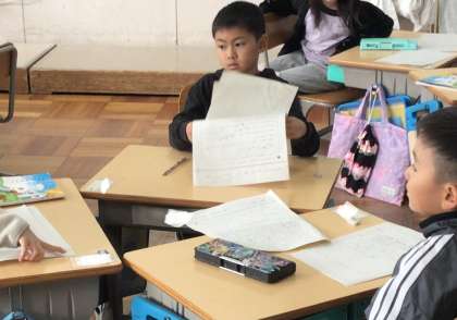 1年1組さん、国語でお話作りを終え、今日は読み合わせでした。