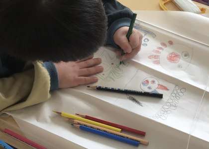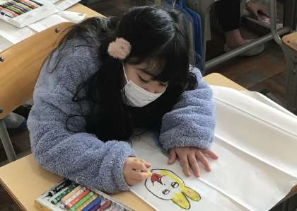 アニメやディズニーのキャラクターを描いている子もいました。 たこに大きなタコを描いている子もいましたよ。