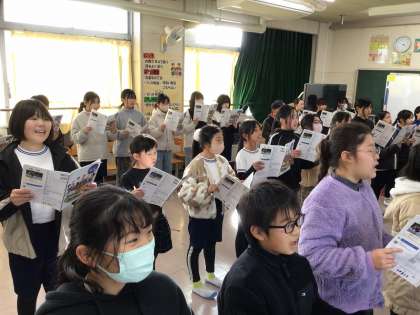 リコーダーの演奏などと合わせて、2月6日(金)の学校公開日のおり、1時間目に音楽室にて、5年生のみんなが合唱を披露する会を予定しています。