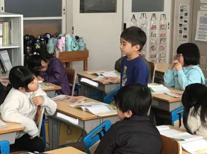 1年1組さん、道徳の授業で「にんじんばたけで」というお話を通して、「良いこと、悪いこと」について考えていました。