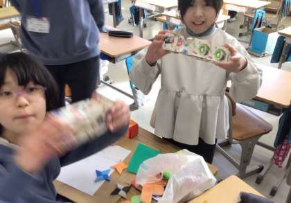 折り紙でプレゼント?(景品?)を作っている女の子もいました。