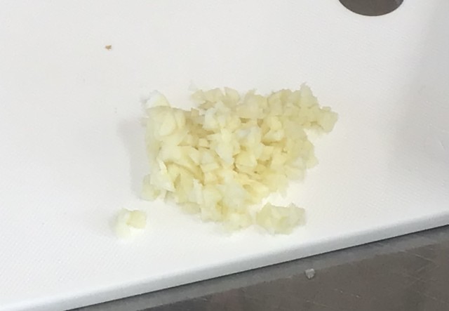 にんにくのみじん切り(?)を頑張った後の表情と、その成果です。