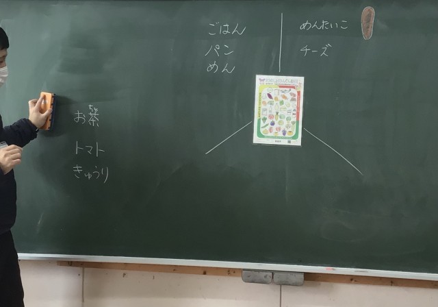 食材を3要素にわける勉強をしていた支援級のみんな。「きゅうりは?赤、黄色、緑、どんな栄養素かな?」と先生が聞くと「キューカンバー?」と英語の勉強を生かした言葉が飛び出ていました。
