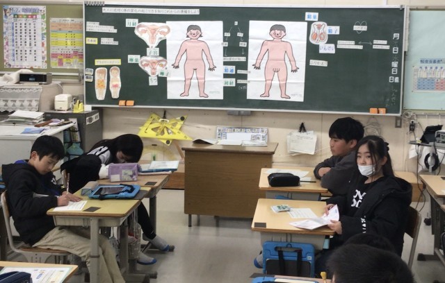 4年2組さん、養護教諭の先生による保健の授業を受けました。