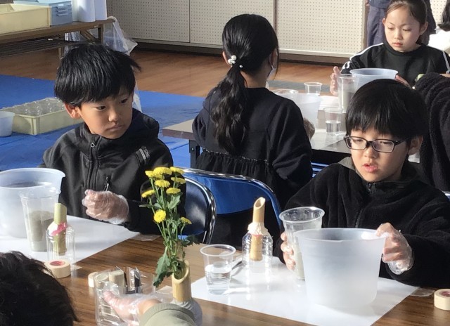 ドローンを飛ばしていないチームは「一輪挿し」作りです。