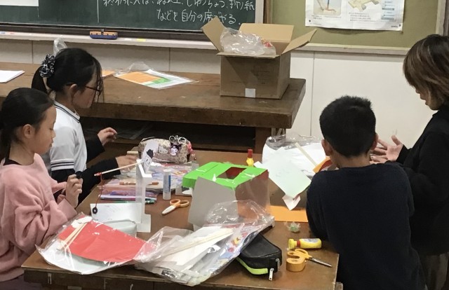 磁石を生かした作品作りに取り組んでいる3年生。