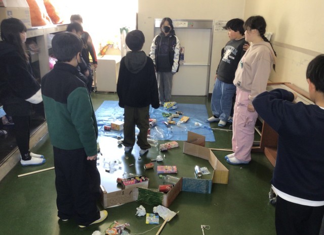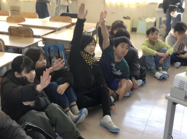 クイズ形式の問題を出したり、ごみの仕分けをしたり、釣りのゲームをしたり、1組の子たちの取組に楽しそうに参加する2組のみんなでした。