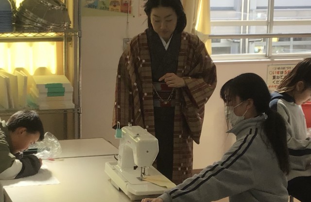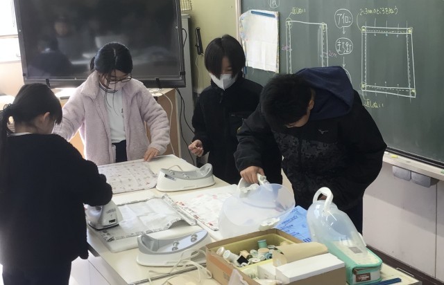 5年2組さん、家庭科の授業でランチョンマットを作成中でした。