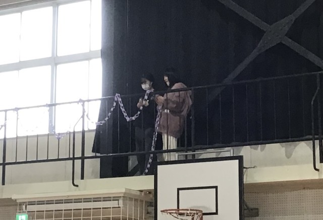 体育館のあちこちで送る会へ向けての練習が同時進行されていました。