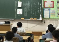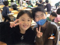 運動場はぬかるんでいるので、3年生の体育は合同で体育館です。
