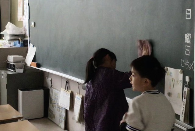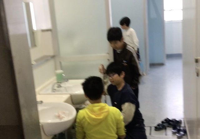 4年1組の教室は床がピッカピカでした。