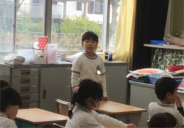 さまざまな担当の子が、みんなに今日、頑張りたいことを話していました。