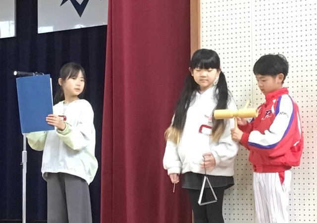 ウッドブロックやトライアングルも、クイズの中で使います。