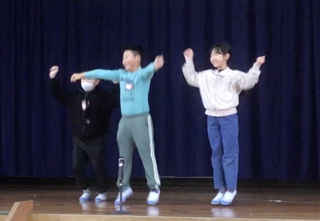 3年生のみんなが体育館に集まって、送る会のリハーサルを行っていました。