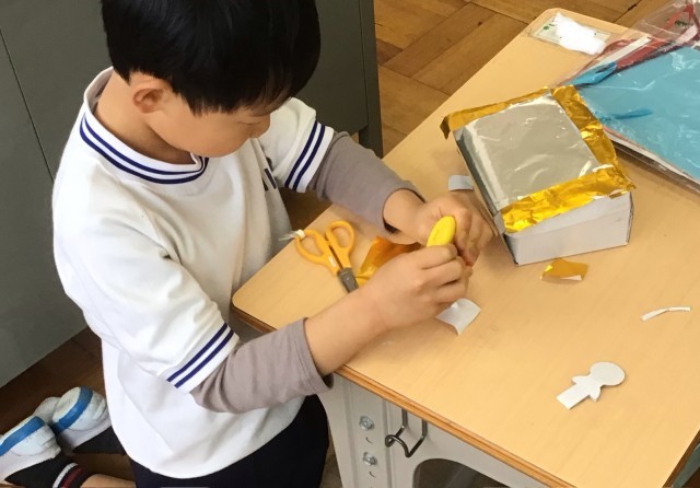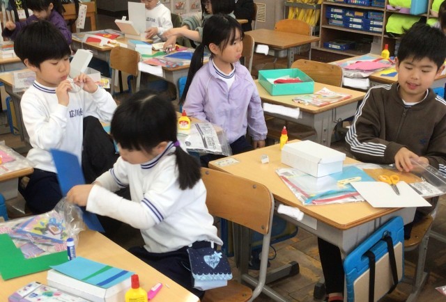 版画のうつしも終わった子たちは、新しい図工のキットをもらっていました。